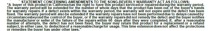 Under California’s Song-Beverly Consumer Warranty Act, your warranty is effectively paused while your vehicle is out of service for warranty repairs.